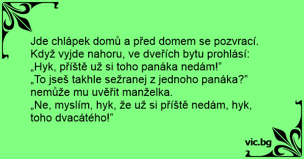„Ne, myslím, hyk, že už si příště nedám, hyk, toho dvacátého!”