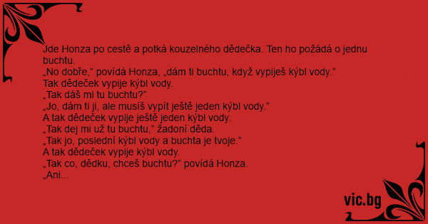 „No dobře,” povídá Honza, „dám ti buchtu, když vypiješ kýbl vody.”