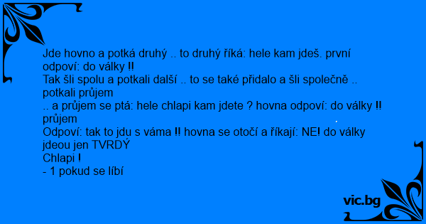 Jde hovno a potká druhý .. to druhý říká: hele kam jdeš. první odpoví: do války !!