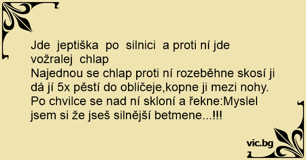 Najednou se chlap proti ní rozeběhne skosí ji dá jí 5x pěstí do obličeje,kopne ji mezi nohy. Po chvilce se nаd ní skloní a řekne:Myslel jsem si že jseš silnější betmene...!!!