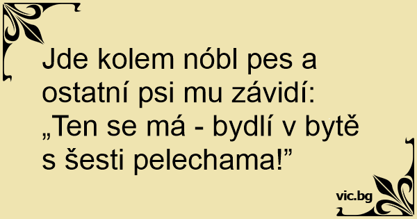 Jde kolem nóbl pes a ostatní psi mu závidí: „Ten se má - bydlí v bytě s šesti pelechama!”