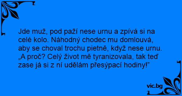 „A proč? Celý život mě tyranizovala, tak teď zase já si z ní udělám přesýpací hodiny!”