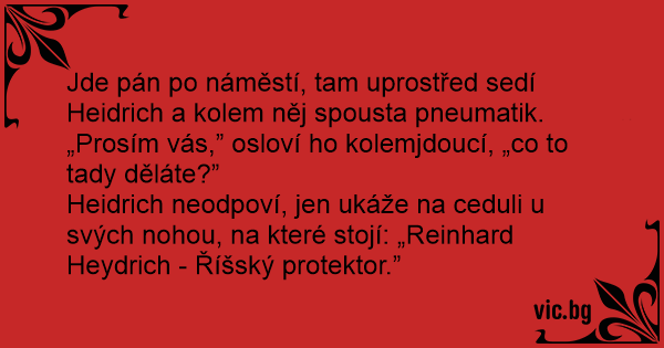 Jde pán po náměstí, tam uprostřed sedí Heidrich a kolem něj spousta pneumatik.