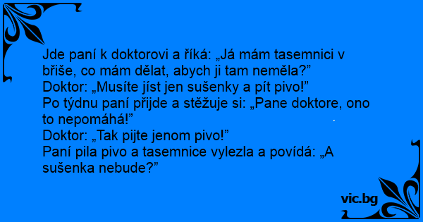 Jde paní k doktorovi a říká: „Já mám tasemnici v břiše, co mám dělat, abych ji tam neměla?”