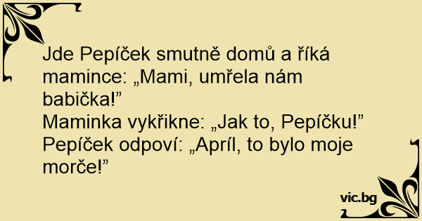 Jde Pepíček smutně domů a říká mamince: „Mami, umřela nám babička!”