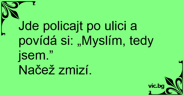Jde policajt po ulici a povídá si: „Myslím, tedy jsem.”