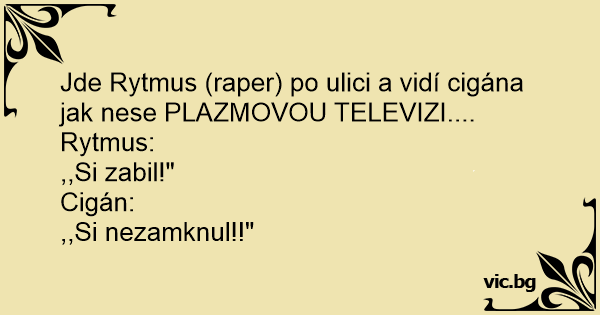 Jde Rytmus (rареr) po ulici a vidí cigána jak nese PLAZMOVOU TELEVIZI....