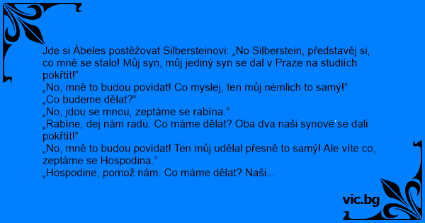 Jde si Ábeles postěžovat Silbersteinovi: „No Silberstein, představěj si, co mně se stalo! Můj syn, můj jediný syn se dal v Praze na studiích pokřtít!”