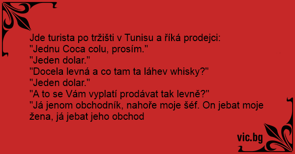 Jde turista po tržišti v Tunisu a říká prodejci: