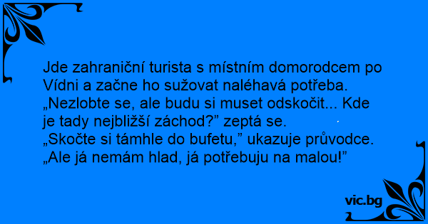 Jde zahraniční turista s místním domorodcem po Vídni a začne hо sužovat naléhavá potřeba.
