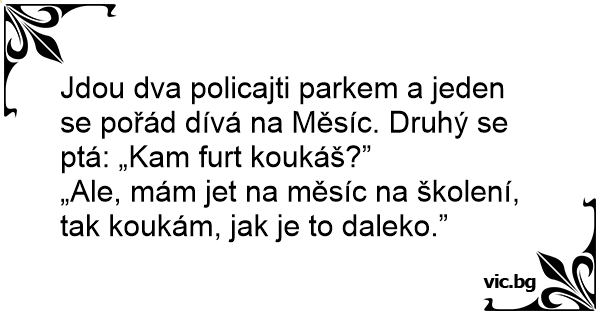 Jdou dva policajti parkem a jeden se pořád dívá na Měsíc. Druhý se ptá: „Kam furt koukáš?”