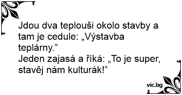 Jdou dva teplouši okolo stavby a tam je cedule: „Výstavba teplárny.”