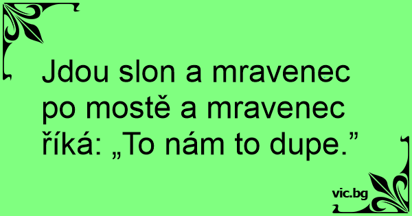Jdou slon a mravenec po mostě a mravenec říká: „To nám to dupe.”