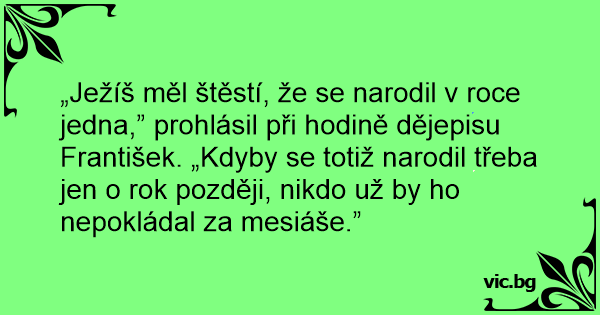 „Ježíš měl štěstí, že se narodil v roce jedna,” prohlásil při hodině dějepisu František. „Kdyby se totiž narodil třeba jen o rok později, nikdo už by hо nepokládal za mesiáše.”