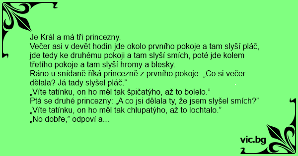 Ptá se druhé princezny: „A co jsi dělala ty, že jsem slyšel smích?”