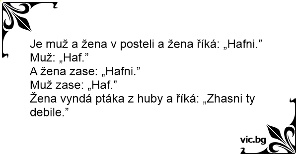 Je muž a žena v posteli a žena říká: „Hafni.”