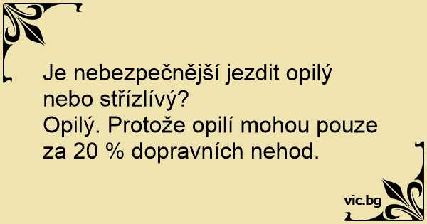 Opilý. Protože opilí mohou pouze za 20 % dopravních nehod.