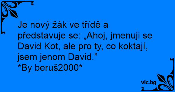 Je nový žák ve třídě a představuje se: „Ahoj, jmenuji se David Kot, ale pro ty, co koktají, jsem jenom David.”