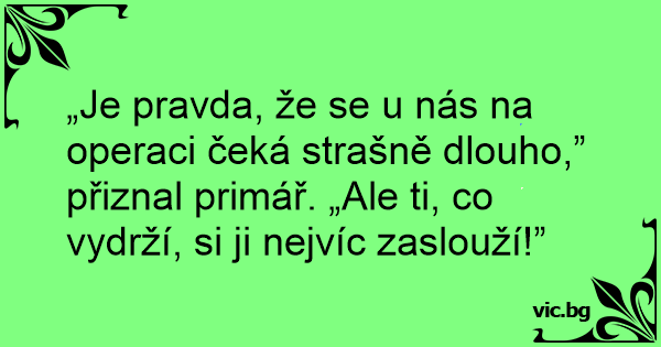 „Je pravda, že se u nás na operaci čeká strašně dlouho,” přiznal primář. „Ale ti, co vydrží, si ji nejvíc zaslouží!”