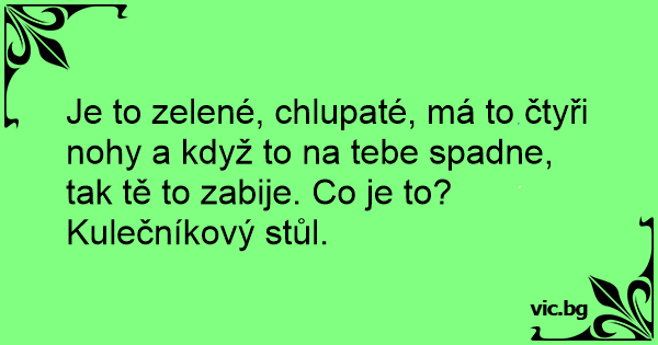 Je to zelené, chlupaté, má to čtyři nohy a když to na tebe spadne, tak tě to zabije. Co je to?