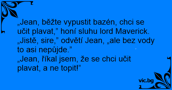 „Jean, říkal jsem, že se chci učit plavat, a ne topit!”