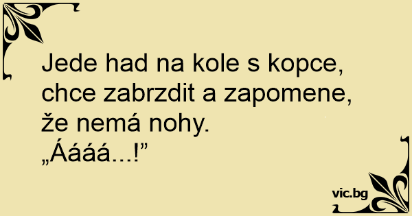 Jede had na kole s kopce, chce zabrzdit a zapomene, že nemá nohy.