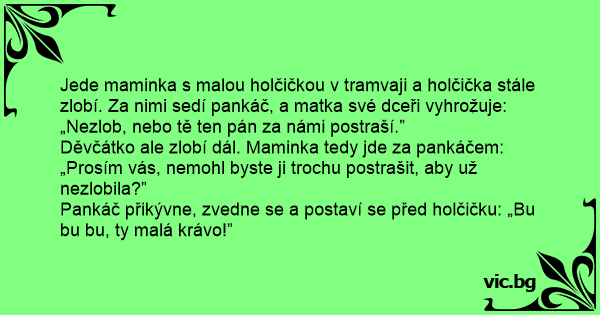 Jede maminka s malou holčičkou v tramvaji a holčička stále zlobí. Za nimi sedí pankáč, a matka své dceři vyhrožuje: „Nezlob, nebo tě ten pán za námi postraší.”