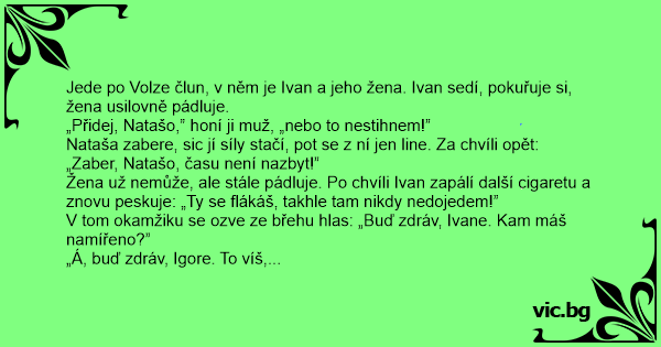 V tom okamžiku se ozve ze břehu hlas: „Buď zdráv, Ivane. Kam máš namířeno?”