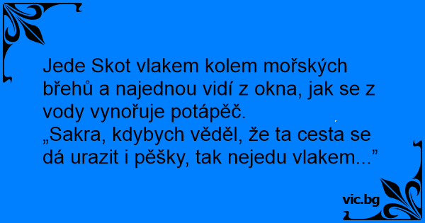 Jede Skot vlakem kolem mořských břehů a najednou vidí z okna, jak se z vody vynořuje potápěč.