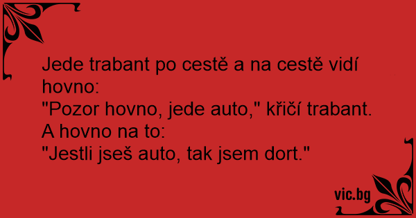 "Pozor hovno, jede auto," křičí trabant.