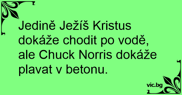 Jedině Ježíš Kristus dokáže chodit po vodě, ale Chuck Norris dokáže plavat v betonu.