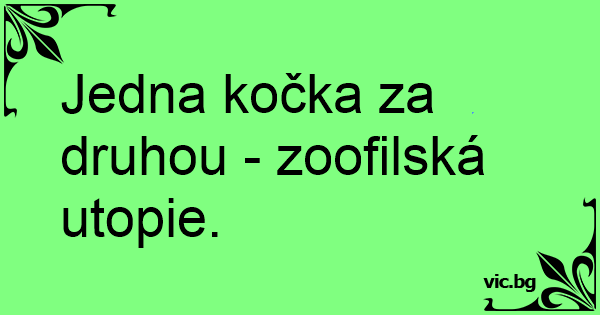 Jedna kočka za druhou - zoofilská utopie.