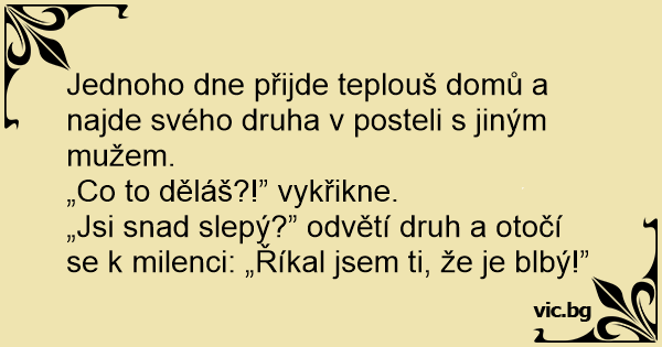 „Jsi snad slepý?” odvětí druh a otočí se k milenci: „Říkal jsem ti, že je blbý!”