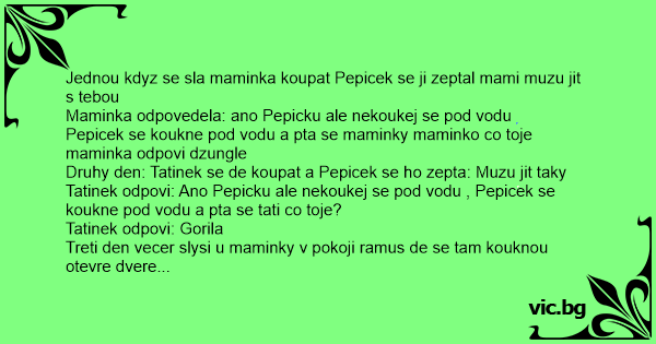 Tatinek odpovi: Ano Pepicku ale nekoukej se pod vodu , Pepicek se koukne pod vodu a pta se tati co toje?