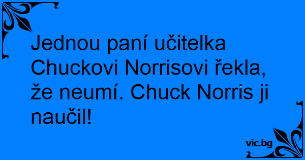 Jednou paní učitelka Chuckovi Norrisovi řekla, že neumí. Chuck Norris ji naučil!
