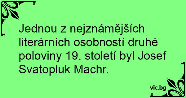Jednou z nejznámějších literárních osobností druhé poloviny 19. století byl Josef Svatopluk Machr.