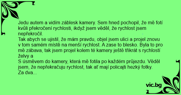S úsměvem do kamery, která mě fotila po každém průjezdu. Věděl jsem, že nepřekračuju rychlost, tak ať mají policajti hezký fotky.