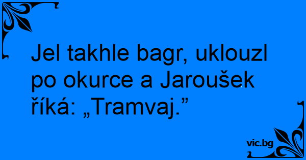 Jel takhle bagr, uklouzl po okurce a Jaroušek říká: „Tramvaj.”