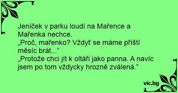 „Proč, mařenko? Vždyť se máme příští měsíc brát...”