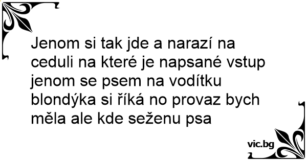 Jenom si tak jde a narazí na ceduli na které je napsané vstup jenom se psem na vodítku blondýka si říká no provaz bych měla ale kde seženu psa