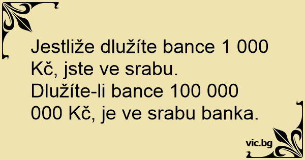 Dlužíte-li bance 100 000 000 Kč, je ve srabu banka.