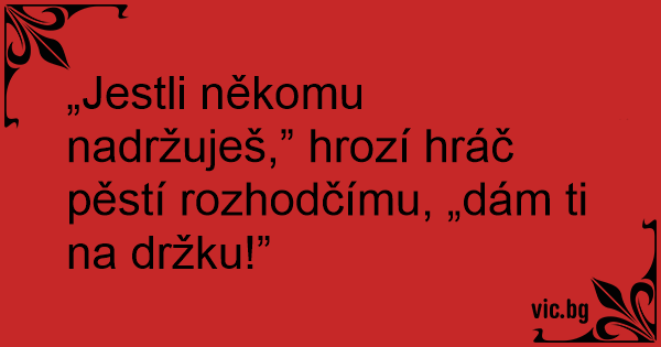 Български English Deutsch Español Русский Français Italiano Ελληνικά Македонски Türkçe Українська Português Polski Svenska Nederlands Dansk Norsk Suomi Magyar Româna „Jestli někomu nadržuješ,” hrozí hráč pěstí rozhodčímu, „dám ti na držku!” Lietuvių Latviešu Hrvatski