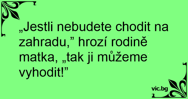 „Jestli nebudete chodit na zahradu,” hrozí rodině matka, „tak ji můžeme vyhodit!”