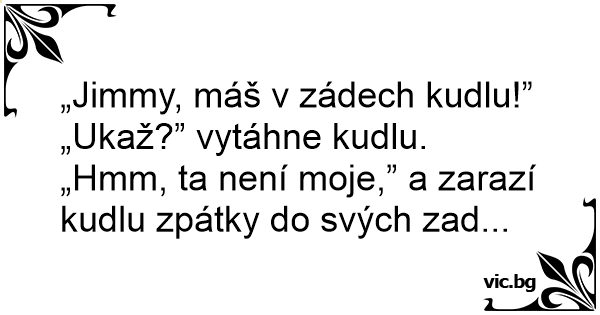 „Ukaž?” vytáhne kudlu. „Hmm, ta není moje,” a zarazí kudlu zpátky do svých zad...