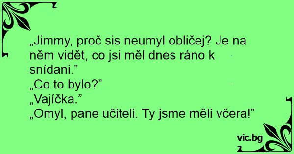 „Jimmy, proč sis neumyl obličej? Je na něm vidět, co jsi měl dnes ráno k snídani.”