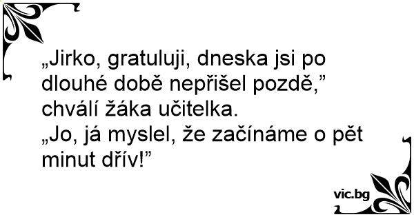 „Jirko, gratuluji, dneska jsi po dlouhé době nepřišel pozdě,” chválí žáka učitelka.