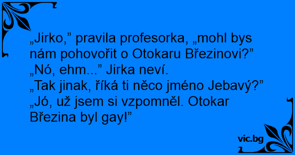 „Jirko,” pravila profesorka, „mohl bys nám pohovořit o Otokaru Březinovi?”