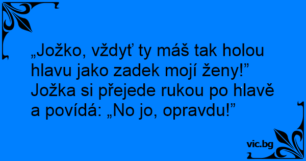 „Jožko, vždyť ty máš tak holou hlavu jako zadek mojí ženy!”