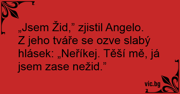 Z jeho tváře se ozve slabý hlásek: „Neříkej. Těší mě, já jsem zase nežid.”