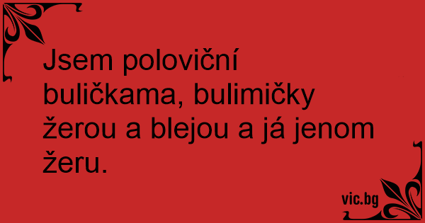 Jsem poloviční buličkama, bulimičky žerou a blejou a já jenom žeru.